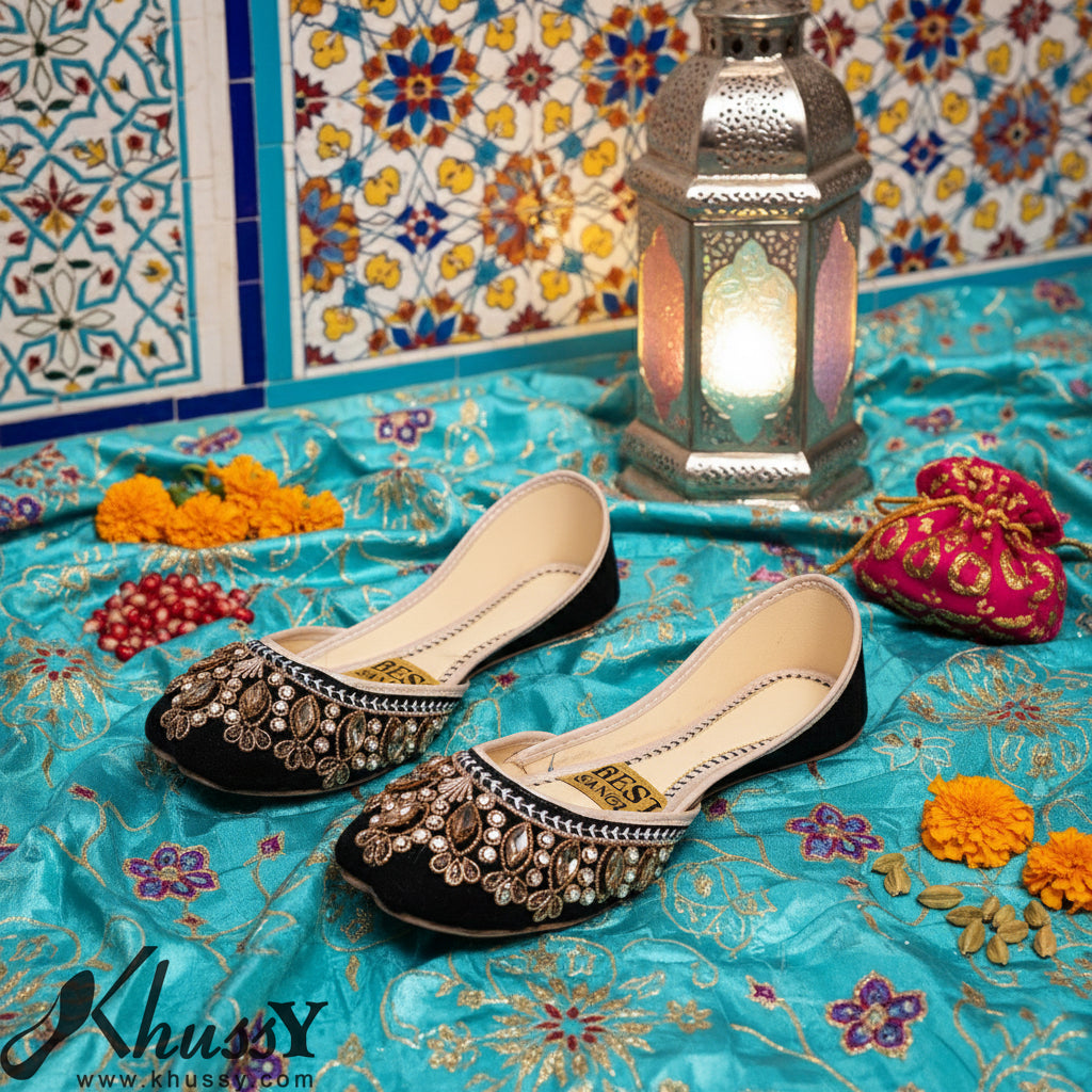 Elevate your style with GlimmerStep, a luxurious handcrafted Khussa designed for the modern woman. These Khussas are perfect for weddings, festive celebrations, and everyday elegance, featuring intricate zari embroidery, sparkling embellishments, and plush comfort. Crafted with premium materials and expert artistry, GlimmerStep ensures effortless style and unmatched durability.