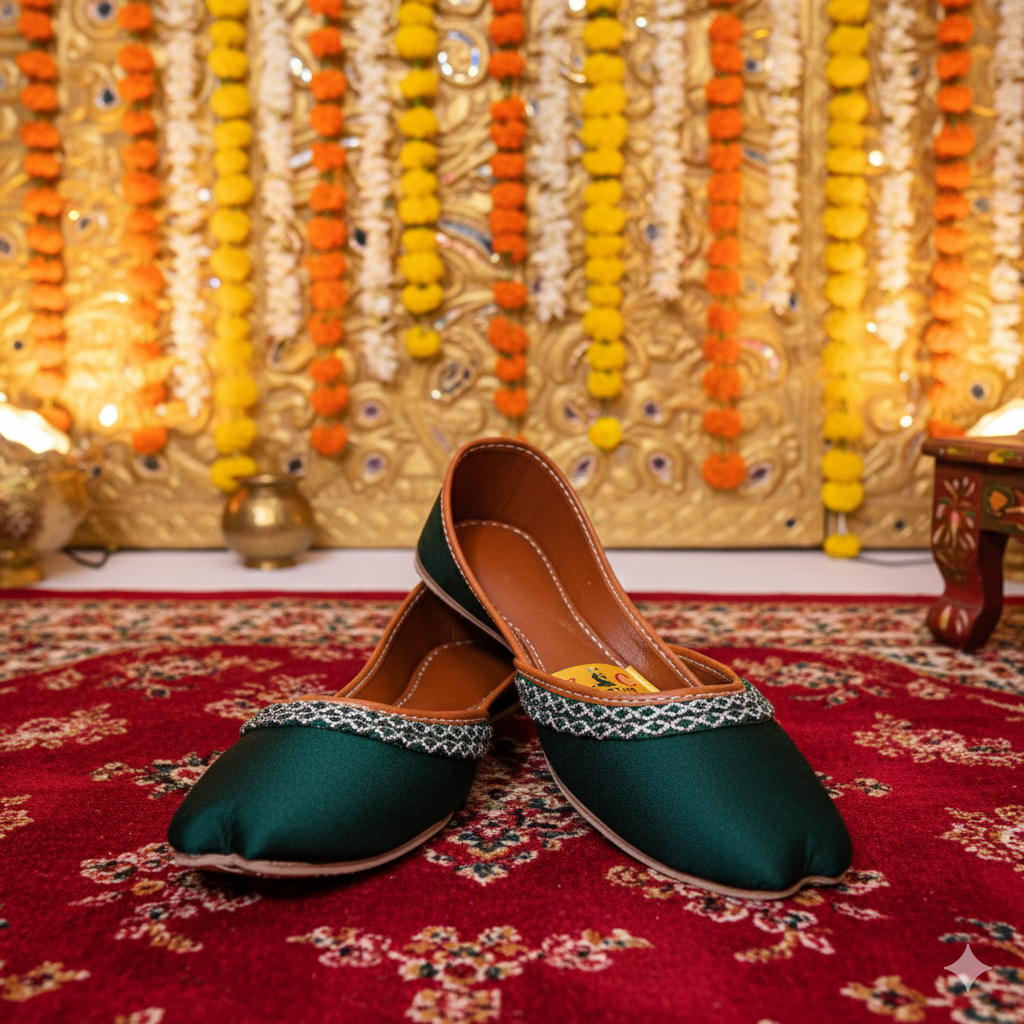 Step into luxury with Royal Touch, a handcrafted embroidered Khussa blending tradition and elegance. Made with premium velvet, intricate golden embroidery, and a soft cushioned sole for all-day comfort.
